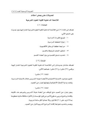 تعديل بعض أحكام اللائحة الداخلية لكلية العلوم الشرعية