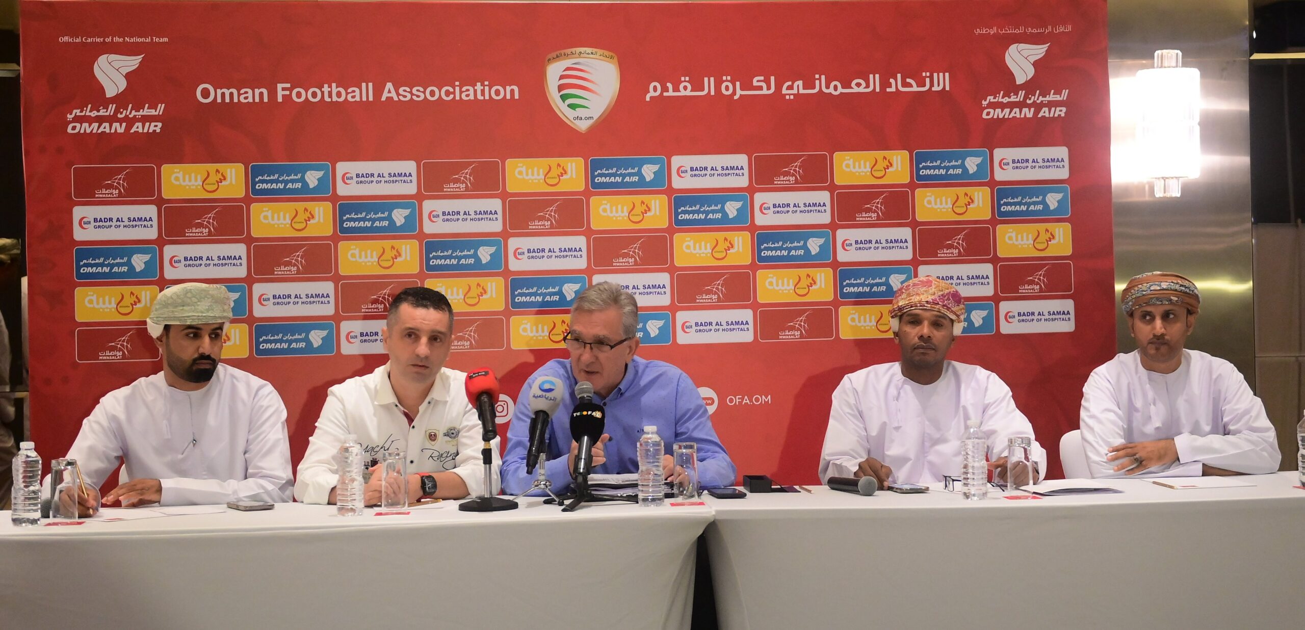 وتضم قائمة المنتخب في حراسة المرمى إبراهيم المخيني وأحمد الرواحي وفايز الرشيدي، وفي الدفاع أمجد الحارثي وعاهد الهديفي ومحمود المشيفري وأحمد الكعبي وعلي البوسعيدي وخالد البريكي وأحمد الخميسي ومحمد العامري وغانم الحبشي وفهمي دوربين، وفي خط الوسط مصعب المعمري وتميم البلوشي وحارب السعدي وناصر الرواحي ومعتز عبدربه وعمر الفزاري وصلاح اليحيائي وزاهر الأغبري وعبدالله فواز وجميل اليحمدي، وفي الهجوم محسن الغساني وخالد الهاجري وسامي الحسني وعمر المالكي وعصام الصبحي.