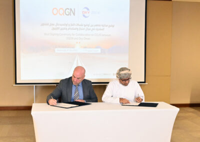 ومن جانب آخر، وقعت شركة “أوكسيدنتال عُمان” وشركة أوكيو لشبكات الغاز على مذكرة تفاهم؛ بهدف إجراء دراسة مشتركة حول المشروعات المحتملة لحجز الكربون واستخدامه وتخزينه في سلطنة عُمان بالتنسيق مع مشروعات الاستخلاص المعزز للنفط التي تنفّذها أوكسي عُمان في منشآتها الإنتاجية بسلطنة عُمان. ووفقًا لهذه المذكرة، اتفق الجانبان على تبادل المعلومات والخبرات الفنية ذات الصلة بوضع الاستراتيجيات التي تضمن تعميم مشروعات حجز الكربون واستخدامه وعزله في سلطنة عُمان بما يتماشى مع التوجه الاستراتيجي الوطني، بما في ذلك حجز الكربون ونقله إلى المنشآت الإنتاجية لأوكسي عُمان لأغراض الاستخلاص المعزز للنفط، وتقديم الدعم اللازم من أجل وضع السياسات والإجراءات لدى الجهات الحكومية المعنية.