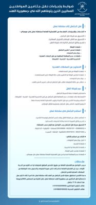 نشرت القنصلية العامّة العمانية في مومباي الإجراءات والضوابط المتبعة في نقل المواطنين الذين يتوفون بإرادة الله تعالى؛  وذلك تيسيراً للمواطنين ⁧‫العمانيين‬⁩ في جمهورية الهند. كما هو موضح ادناه :