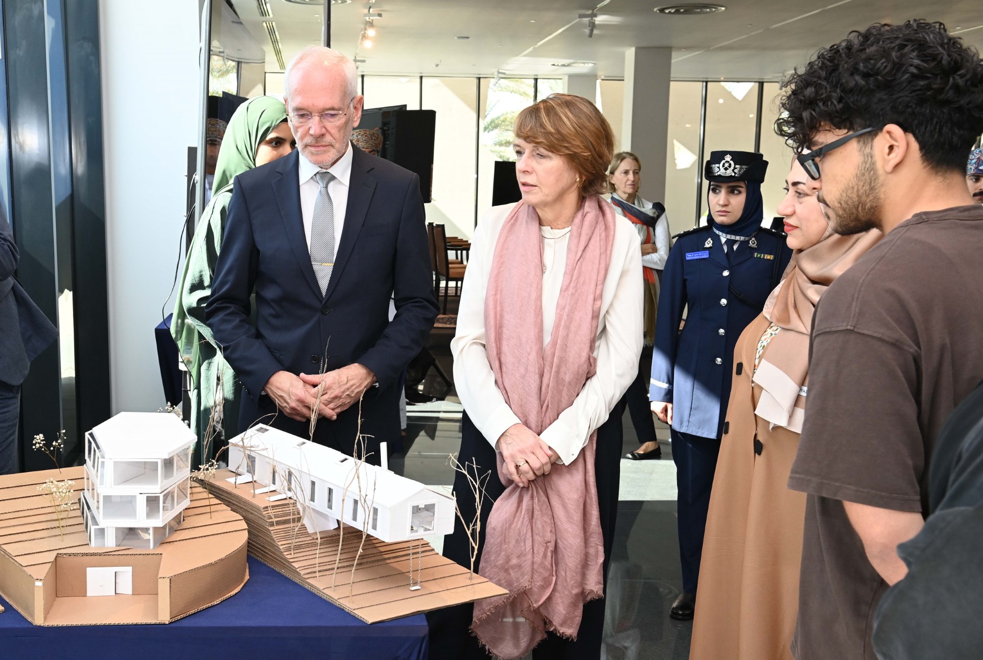 وزارت حرم فخامة الرئيس الألماني الجامعة الألمانية للتكنولوجيا في عُمان وتجولت في أقسامها وكلياتها وتعرّفت على النظام الأكاديمي والخدمات المقدمة، والبرامج العلمية والبحثية.