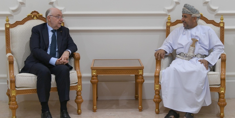 استقبل معالي الدكتور محمد بن ناصر الزعابي الأمين العام بوزارة الدفاع اليوم بمكتبه بمعسكر المرتفعة معالي سلفاتوري شاكيتانو رئيس مجلس منظمة الطيران المدني الدولي (الإيكاو) والوفد المرافق له الذي يزور سلطنة عمان حاليًّا.