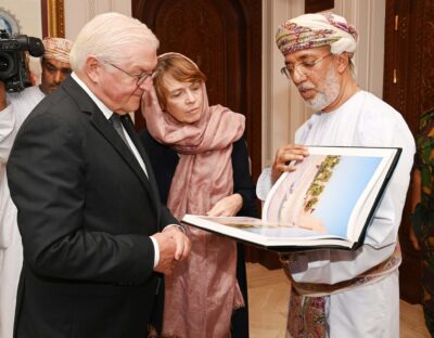 اطلع فخامةُ الرئيس الدكتور فرانك فالتر شتاينماير رئيس جمهورية ألمانيا الاتحادية وحرمُه خلال زيارتهما جامع السُّلطان قابوس الأكبر على مختلف التصاميم المعمارية العُمانية والإسلامية التي بُني بها.
