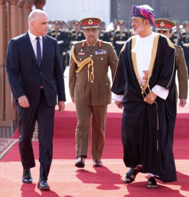 استقبل حضرةُ صاحبِ الجلالةِ السُّلطان هيثم_بن_طارق المعظم /حفظه اللهُ ورعاه/ فخامة الرئيس الدكتور / آلان بيرسيه رئيـس الاتحاد السويسري الذي بدأ زيارة رسميّة لسلطنة عُمان.
