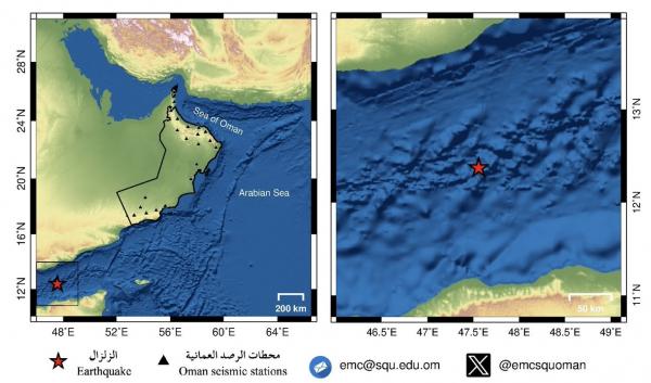 رصد زلزال يبعد عن صلالة بـ871 كيلومترًا