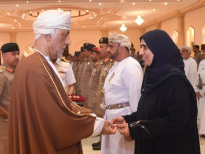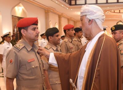 تفضل حضرة صاحب الجلالة السلطان هيثم بن طارق المعظم القائد الأعلى حفظه الله ورعاه- فأنعم على عدد من الضباط وضباط الصف والأفراد بقوات السلطان المسلحة والدوائر الأخرى بوزارة الدفاع، والحرس السلطاني العُماني بميداليتي الخدمة الممتازة والثناء السلطاني.