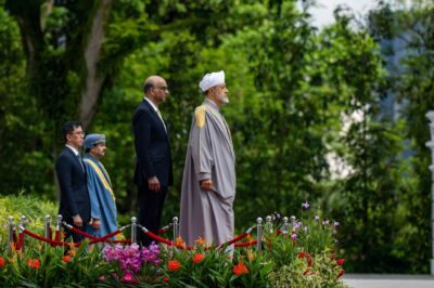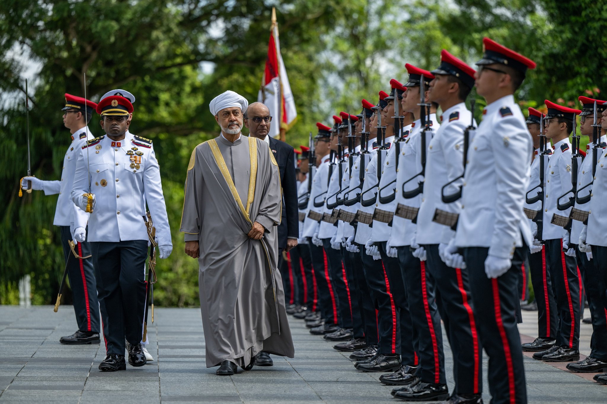 أُجريت لحضرةِ صاحبِ الجلالةِ السُّلطان هيثم بن طارق المعظم/حفظهُ اللهُ ورعاهُ/ مراسم استقبال رسميّة بقصر إستانا بالعاصمة سنغافورة؛ بمناسبة زيارة “دولة” يقوم بها جلالتُه لجمهورية سنغافورة.