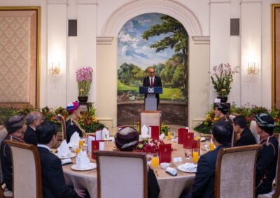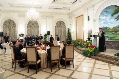 تكريمًا لحضرةِ صاحبِ الجلالةِ السُّلطان هيثم بن طارق المعظم – حفظهُ اللهُ ورعاه – أقام فخامةُ الرئيس ثارمان شانموغاراتنام رئيس جمهورية سنغافورة مأدبة عشاء رسميّة على شرف جلالةِ السُّلطان المعظم بقصر أستانا بالعاصمة سنغافورة.