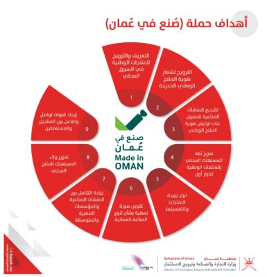 تجدر الاشارة إلى أن حملة (صُنع في عُمان) تستمر حتى 31 ديسمبر 2023م وتشمل العديد من الأنشطة تقام في المراكز التجارية بمختلف محافظات سلطنة عمان وذلك تعزيزا للأدوار التكاملية والشراكة بين القطاعين الخاص والعام، وتهدف هذه الأركان إلى عرض الخيارات المتنوعة للمنتجات الوطنية ،وابراز جودتها مما يعزز ثقة المستهلك المحلي نحوها ويشجعه على تفضيلها في الشراء ،مما له الأثر في تعزيز ولاء المستهلك للمنتجات العمانية.