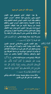 وإذ تمتد إليه الأنظار ويُعَوَّل عليه كثيرا في نصرة قضية الحق؛ أصبح لزاما عليه أن يمسح آثار خلافه في الماضي حتى لا يبقى صدع إلا رأَبه.