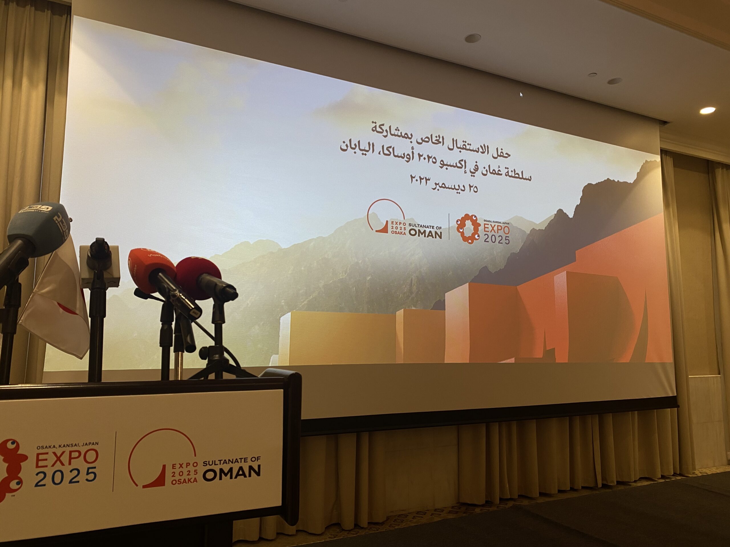 نظمت المفوضية العامة لجناح سلطنة عمان بالتعاون مع سفارة اليابان في مسقط حفل استقبال مشاركة سلطنة عُمان في أكسبو 2025 اليابان- أوسكا – والمزمع اقامته في الفترة من 13 أبريل إلى 13 أكتوبر في جزيرة أوسكا في اليابان- ، برعاية معالي معالي قيس بن محمد اليوسف وزير التجارة والصناعة وترويج الاستثمار ، وبحضور سعادة السيد سعيد بن سلطان البوسعيدي المفوض العام لجناح سلطنة عُمان في معرض أكسبو أوسكا 2025، وسعادة السفير جوتا ياموموتو، سفير دولة اليابان في السلطنة وعدد من أصحاب السعادة ، تضمن الحفل مواد مرئية ، تحكي عن فكرة جناح سلطنة عمان ، ومشاركتها في هذا الحدث العالمي ، وكلمة ترحيبية للسفير الياباني ، وكلمة للمفوض العام لجناح سلطنة عمان في معرض إكسبو 2025 أوساكا.