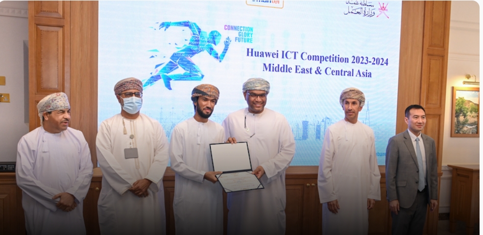 كرمت وزارة العمل اليوم تسعة طلاب من سلطنة عُمان ضمن أكثر من ألف مشارك في مسابقة هواوي لتقنية المعلومات والاتصالات لمنطقة الشرق الأوسط وآسيا الوسطى 2023-2024 المتأهلين على المستوى المحلي ضمن محاور شبكات الاتصالات والسحابة الإلكترونية والحوسبة السحابية.