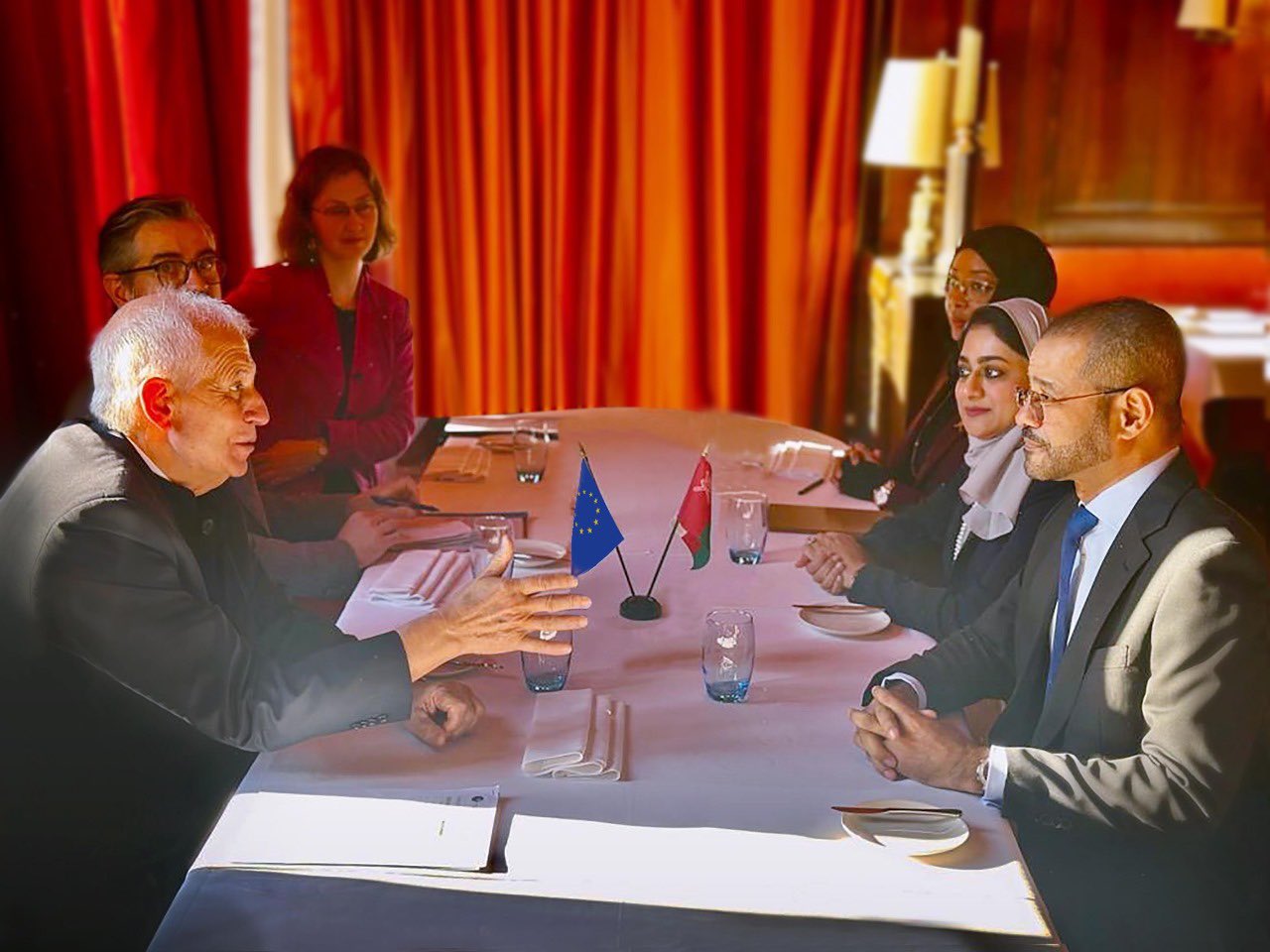 أتفق معالي السيد وزير الخارجية ومعالي الممثل الأعلى للاتحاد الأوروبي للسياسة الخارجية والأمنية ونائب رئيس المفوضية الأوروبية، خلال لقائهما في بروكسل على الضرورة الملحة في احتواء الأزمة في قطاع غزة والحيلولة دون تفاقمها ووقف إطلاق النار وإنقاذ الأرواح وفتح الممرات الكفيلة بدخول المساعدات والمواد الإغاثية والإنسانية للقطاع والإفراج عن الرهائن.