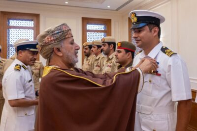 تفضل حضرةُ صاحبِ الجلالةِ السُّلطان هيثم بن طارق المعظّم القائد الأعلى – حفظه الله ورعاه – يتفضل فينعم بميداليتي الخدمة الممتازة والثناء السُّلطاني على عددٍ من الضباط وضباط الصف بشؤون البلاط السُّلطاني، وقام بتقليدهم الميداليات معالي أمين عام شؤون البلاط السُّلطاني.