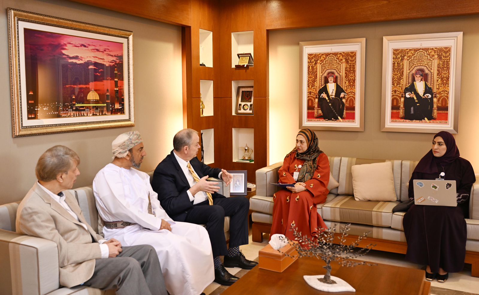 ورحبت معالي الأستاذة الدكتورة الوزيرة بالوفد متمنية لهم طيب الإقامة في سلطنة عمان، وبحث الجانبان تعزيز أوجه التعاون في مختلف المجالات ذات الصلة بالتعليم العالي والبحث العلمي والابتكار، وأكدت على رغبة الوزارة في توثيق العلاقات مع الولايات المتحدة الأمريكية عبر السفارة الأمريكية واللجنة المشتركة العمانية الأمريكية في إعادة فتح المجال للاستفادة من منح فول برايت بعد إيقافها لعدة سنوات.