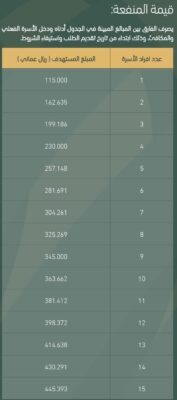 تكمن قيمة المنفعة عن مبلغ يصرف شهريًا بحساب الفارق بين المستوى المستهدف (الجذر التربيعي لعدد أفراد الأسرة × 115 ريال عماني) ومجموع دخل الأسرة.