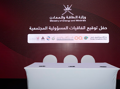 سعياً نحو تقديم أفضل المشاريع والمبادرات في مجال المسؤولية المجتمعية في قطاعات الطاقة والمعادن، وقعت وزارة الطاقة والمعادن عدد من الاتفاقيات لدعم ثلاثة مشاريع وطنية مع عدة جهات مختلفة، بمساهمة سبع شركات رائدة في القطاع وهي شركة تنمية نفط عمان وشركة أوكسيدنتال عمان وشركة بي بي عمان وشركة أوكيو وشركة دليل للنفط وشركة سي سي اينرجي ديفالوبمنت وآرا بتروليوم بمبلغ وقدره مليونين و نص ريال عماني، شملت الاتفاقياتالمشاريع التالية: