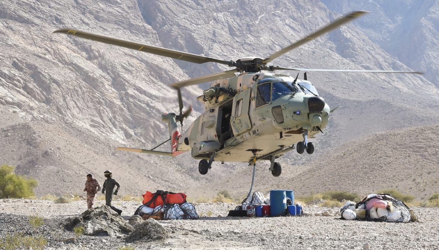 سلاح الجو السلطاني ينفذ عملية نقل مؤن ومواد استهلاكية لأهالي جبل الكور