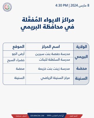 إليك .. مراكز الإيواء المفعلة بمحافظة البريمي