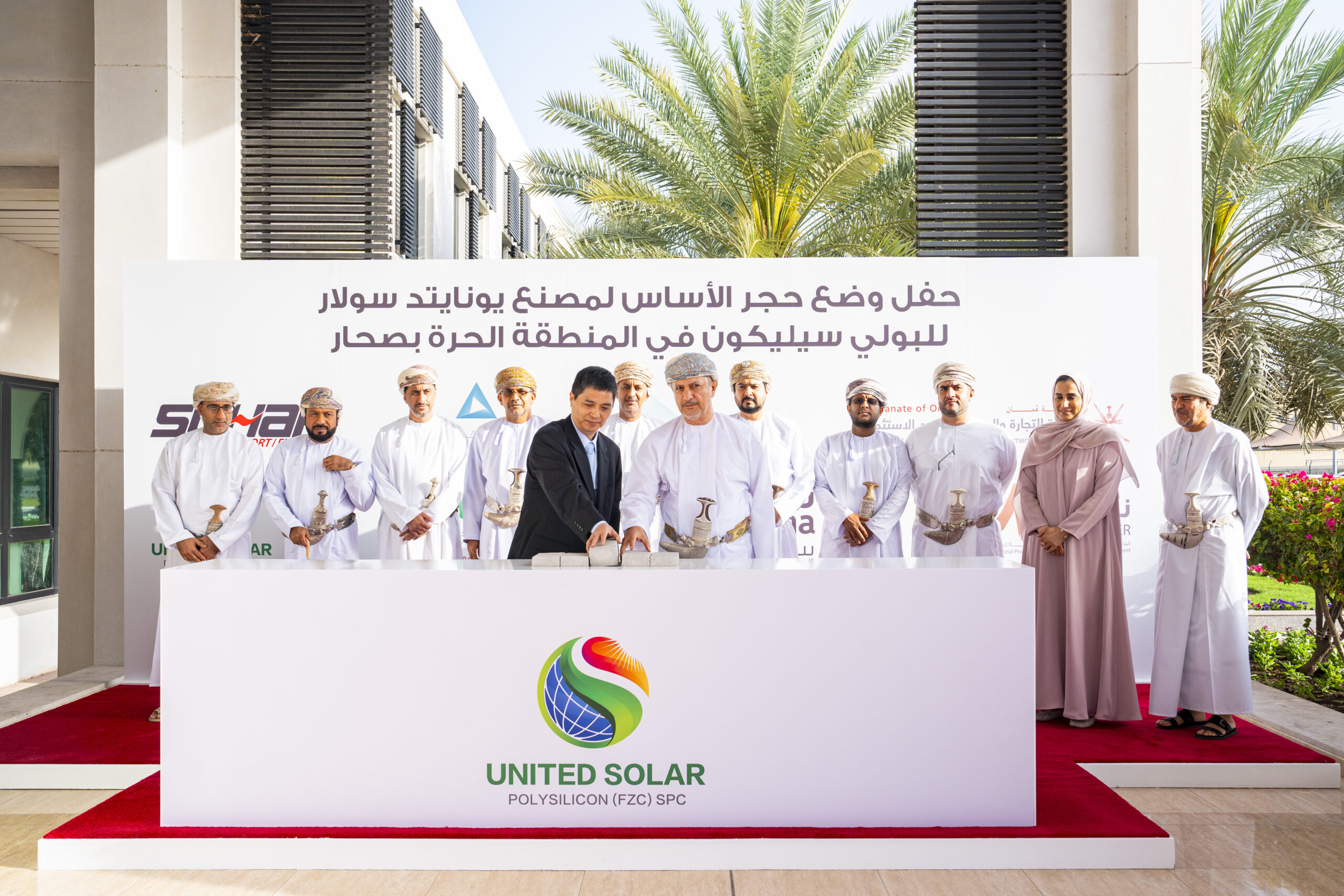 احتفلت شركة يونايتد سولار للبولي سيليكون United Solar Polysilicon اليوم الموافق 10 مارس2024م، بوضع حجر الأساس لمشروع مصنع البولي سيليكون في محافظة شمال الباطنة بالمنطقة الحرة وميناء صحار، بإجمالي استثمار يفوق 520 مليون ريال عماني، وطاقة إنتاجية تصل إلى100 ألف طن سنوياً والذي يتوقع افتتاحه خلال العام 2025م.رعى المناسبة معالي سلطان بن سالم الحبسي وزير المالية،وبحضور أصحاب المعالي والسعادة وعدد من المسؤولين.