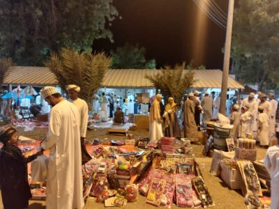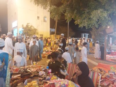 وفي مكان البيع والشراء كان للأطفال النصيب الأكبر في شراء الألعاب والحلويات والمكسرات وهم يرتدون الملابس الجميلة المطرزة وخاصة ملابس البنات اللاتي حرصت أمهاتهن على ارتداء تلك الملابس التقليدية الأصيلة بالوانها المختلفة.