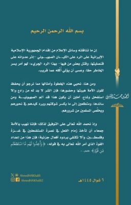 سماحة الشيخ الخليلي: رد فعل إيران تجاه الكيان الصهيوني أمر يسر الخاطر