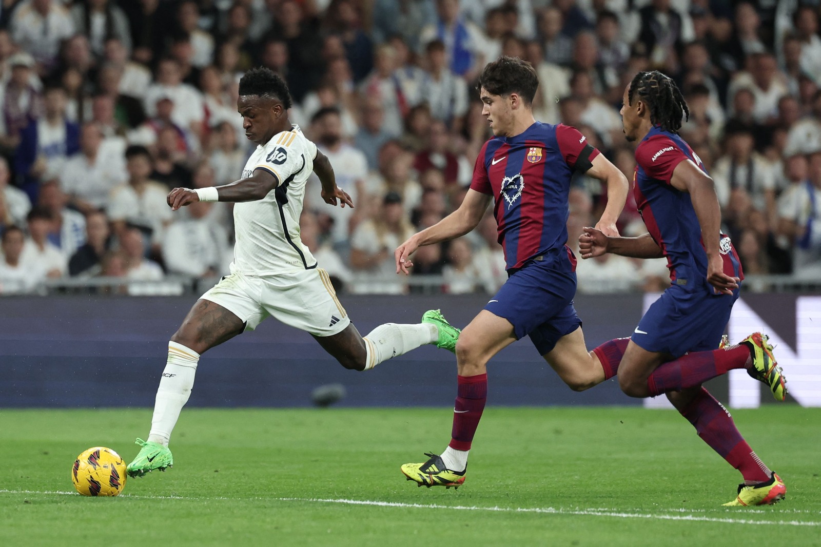 وتقدم برشلونة في النتيجة مرتين حيث أحرز هدفا مبكرا بعد مرور ست دقائق من ركلة ركنية نفذها البرازيلي رافينيا وقابلها المدافع الدنماركي أندريس كريستنسن برأسه في الشباك. وأدرك الفريق المدريدي التعادل بركلة جزاء نفذها البرازيلي فينيسيوس جونيور في الدقيقة 18.