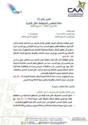 صدور التقرير رقم 1 للحالة الجوية المتوقعة
