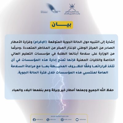 وزارة التعليم العالي تصدر بيان حول الحالة الجوية