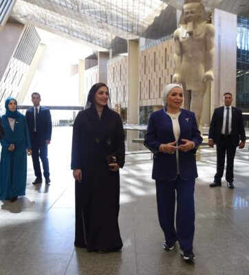 قالت السيدة انتصار السيسي حرم الرئيس المصري عبر حسابها الرسمي على موقع التواصل الاجتماعي فيسبوك ” سعيده بمشاركه السيده الجليلة حرم جلاله سلطان عمان زيارة المتحف المصري الجديد، التي كانت بمثابة رحلة عبر الزمن للحضارة المصرية العريقة بأثارها الخالدة التي تشهد على عبقرية المصريين في كل زمان” .