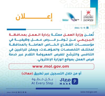 فرص عمل وظيفية بالبريمي .. إليك رابط التسجيل