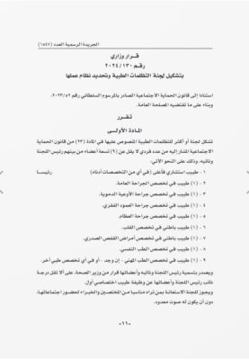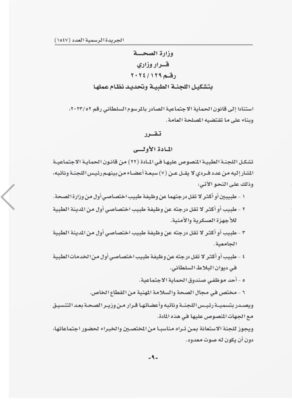 أصدرت وزارة الصحة قرار وزاري رقم ١٢٩ / ٢٠٢٤ بتشكيل اللجنة الطبية وتحديد نظام عملها وقرار وزاري رقم ١٣٠ / ٢٠٢٤ بتشكيل لجنة التظلمات الطبية وتحديد نظام عملها وللمزيد من التفاصيل ادناه :