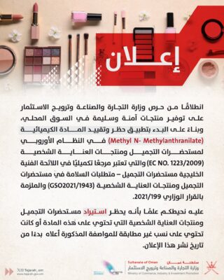 يُحظر استيراد مستحضرات التجميل ومنتجات العناية الشخصية التي تحتوي على مادة