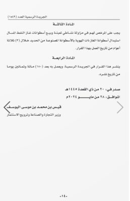 إصدار لائحة تنظيم مزاولة نشاطي تعبئة وبيع أسطوانات غاز النفط المسال