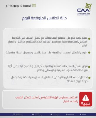 وهج الخليج - مسقط نشرت الأرصاد الجوية العمانية ملخص حالة الطقس لليوم كما هو موضح ادناه :