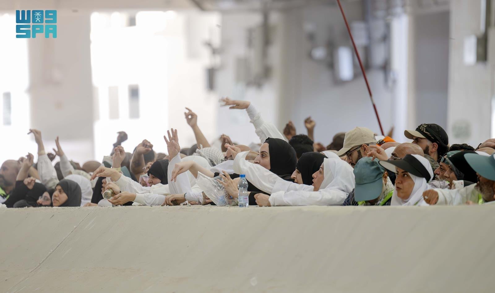 حُجّاج بيت الله الحرام يرمون الجمرات في أول أيام التشريق