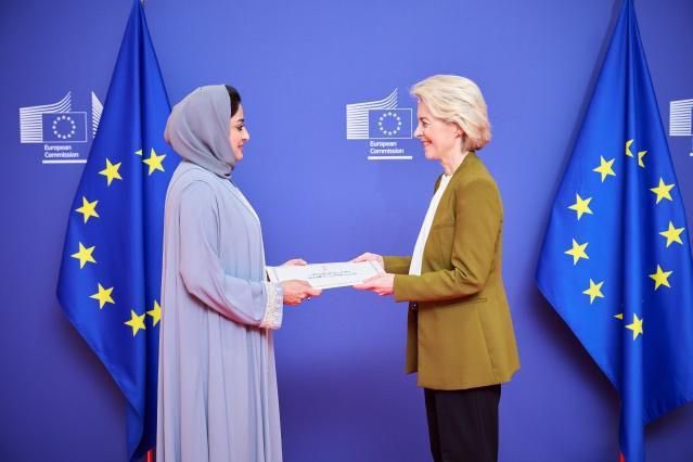تحيّاتُ جلالةِ السُّلطان المعظم ـ حفظه الله ورعاه ـ إلى رئيسة المفوضية الأوروبية نقلتها سعادة رؤى بنت عيسى الزدجالية خلال استقبال معاليها لها لتقديم أوراق اعتمادها رئيسةً لبعثة سلطنة عُمان لدى الاتحاد الأوروبي.