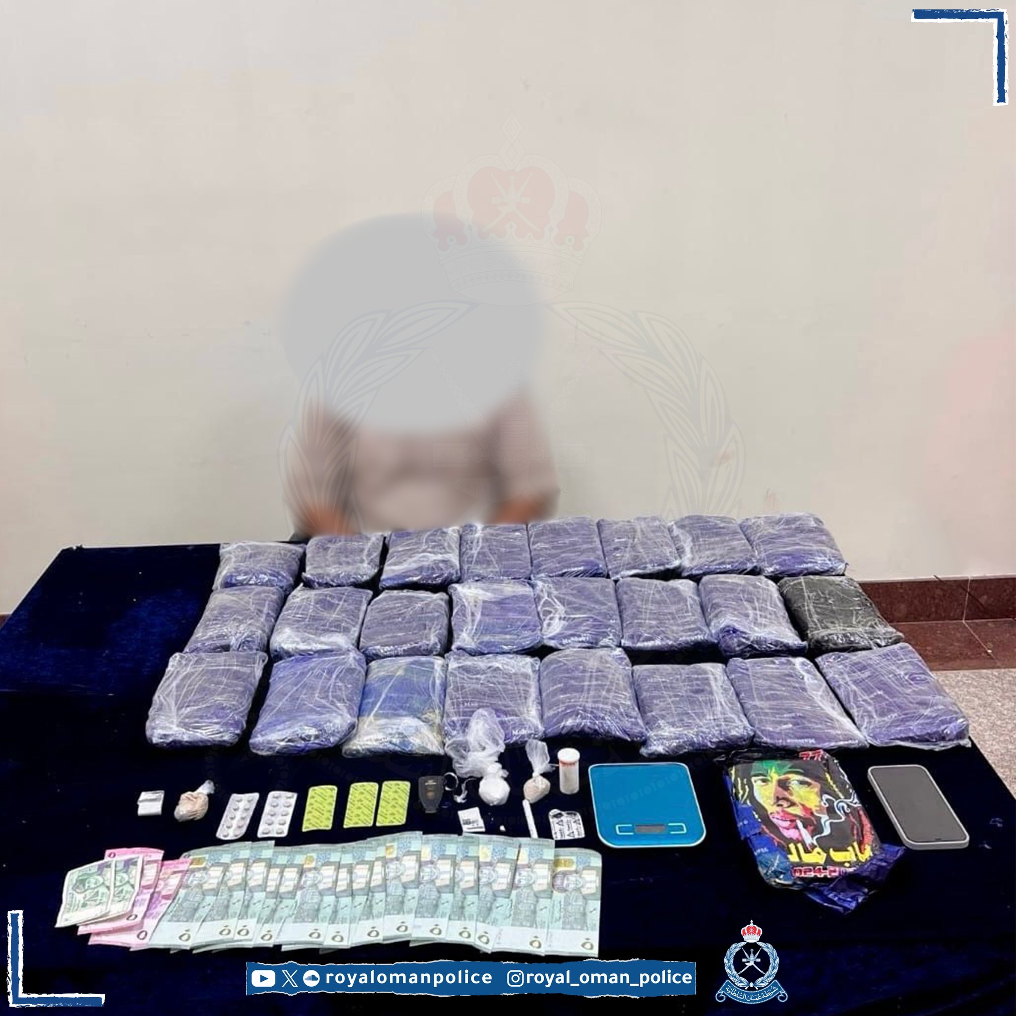 ضبطت إدارة مكافحة المخدرات والمؤثرات العقلية بقيادة شرطة محافظة مسندم شخصًا لحيازته كميات مختلفة من مخدر الحشيش والهيروين والكريستال وأقراص من المؤثرات العقلية، وتستكمل الإجراءات القانونية.