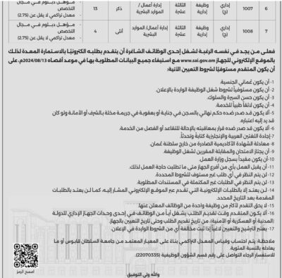 أعلن جهاز الرقابة المالية والإدارية للدولة وبالتنسيق مع وزارة العمل عن فتح باب التوظيف لشغل عدد من الوظائف الشاغرة، وفق الشروط والمدد المقررة بالإعلان ادناه :