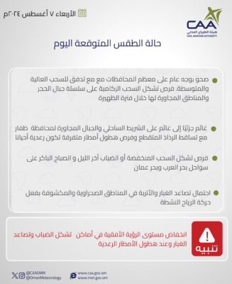 وهج الخليج - مسقط اصدرت الارصاد الجوية ملخص حالة الطقس اليوم كما هو موضح ادناه :