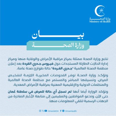 الصحة: لم نسجل أي حالة لجدري القرود في سلطنة عُمان