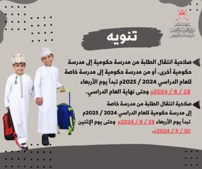 صلاحية انتقال الطلبة العمانيين بين المدارس.. في هذا التوقيت