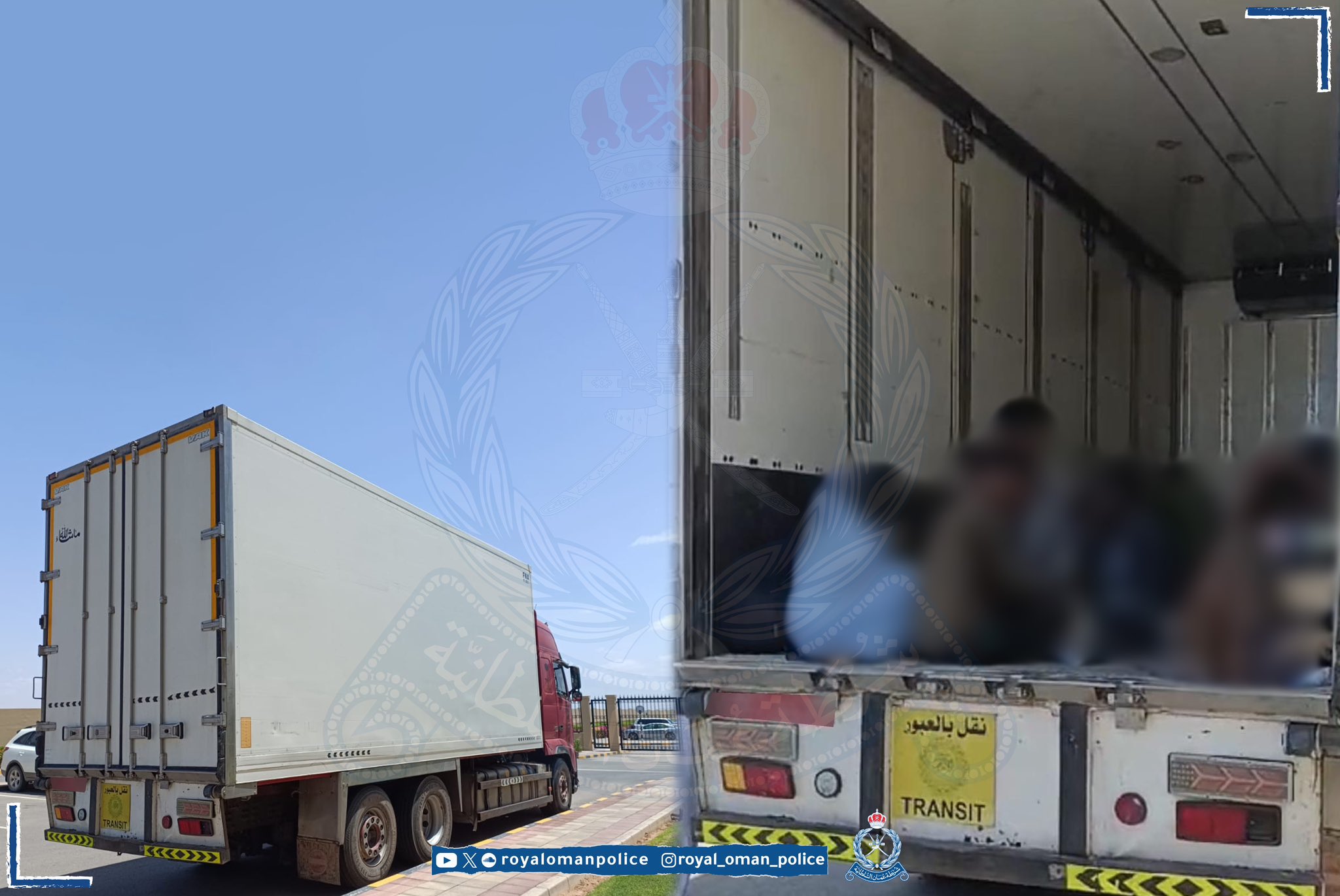 القت قيادة شرطة محافظة شمال الشرقية بالتعاون مع وحدة شرطة المهام الخاصة بإبراء القبض على (35) متسللًا من جنسيات أفريقية وثلاثة أشخاص لقيامهم بنقل المتسللين داخل إحدى الشاحنات، وتُستكمل الإجراءات القانونية بحقهم.