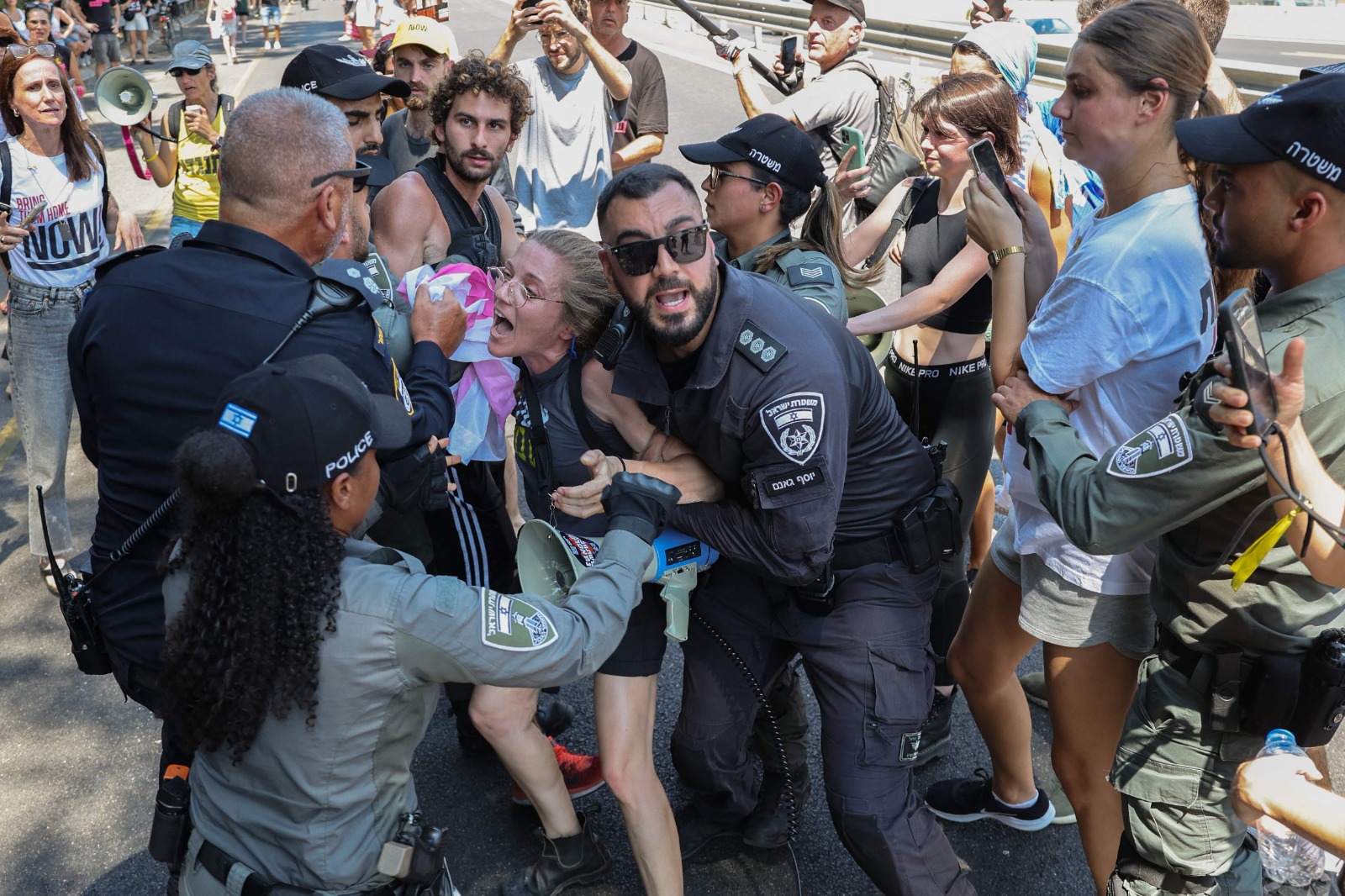 وأتى إضراب الإثنين غداة تحركات احتجاجية واسعة مناهضة للحكومة ومطالبة بإعادة الرهائن، في عدد من المدن لاسيما تل أبيب، حيث نزل عشرات الآلاف الى الشوارع. والإثنين، كرر محتجون قطع طرق في المدينة.
