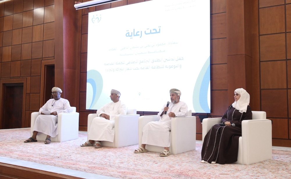 دُشن اليوم بمحافظة شمال الشرقية، البرنامج الإعلامي للحملة الخدمية والتوعوية للنظافة العامة تحت شعار “شراكة والتزام” والمزمع تنفيذها في ولايتي المضيبي وسناو، وذلك تحت رعاية سعادة محمود بن يحيى الذهلي محافظ شمال الشرقية.