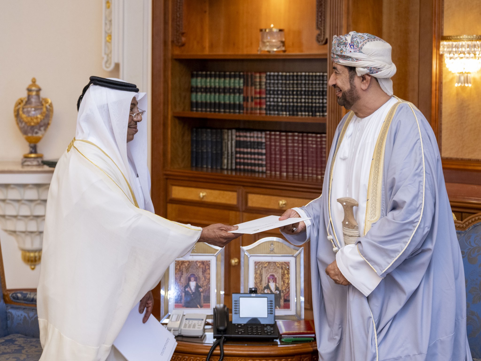 تلقى جلالة السُّلطان المعظّم /حفظه الله ورعاه/ رسالة خطيّة من أخيه سمو الشيخ أمير دولة قطر. تسلّم الرسالة معالي السّيد وزير ديوان البلاط السُّلطاني خلال استقباله سعادة الشيخ سفير دولة قطر المعتمد لدى سلطنة عمان.