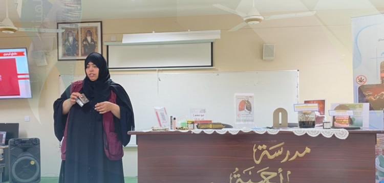 نفذت إدارة_حماية_المستهلك بالرستاق بالتعاون مع قسم التثقيف الصحي بمجمع المصنعة الصحي محاضرة توعوية عن أضرار التبغ الممضوغ والسجائر الإلكترونية على الفرد والمجتمع بمدرسة أم حبيبة للتعليم الاساسي بولاية المصنعة نفذت
