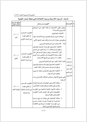 تحديد رسوم الخدمات التي يقدمها المجلس العماني للاختصاصات الطبية .. إليك التفاصيل
