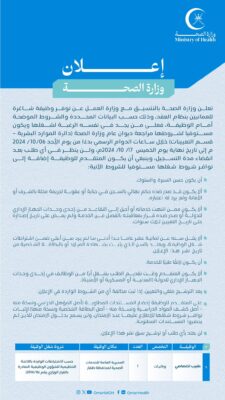 وظيفة شاغرة لدى وزارة الصحة .. إليك التفاصيل