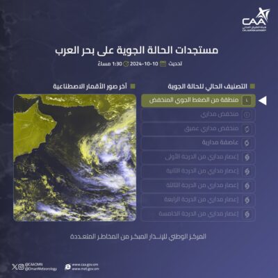 الجدير بالذكر أن الأرصاد الجوية قد ذكرت في وقت سابق إلى احتمال تطور الحالة إلى منخفض جوي في يوم السبت 12 أكتوبر 2024